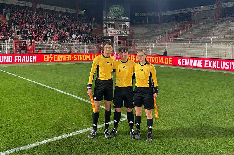 Am Mittwoch, den 15. April 2026 fand das BFV-U19-Halbfinale des Nike-Youth-Cups statt. Das Spiel zwischen dem 1. FC Union Berlin und Hertha BSC gilt schon immer als besonderes Stadtderby. Nicht nur deshalb entschied man kurzerhand, dass das Wochentagspiel in das Stadion an der Alten Försterei verlegt wird. Unsere JLKler Jason Harth, Ruby Harder und Hassan Said leiteten das Spiel und wurden vom Team Öffentlichkeitsarbeit des SR-Ausschusses begleitet.