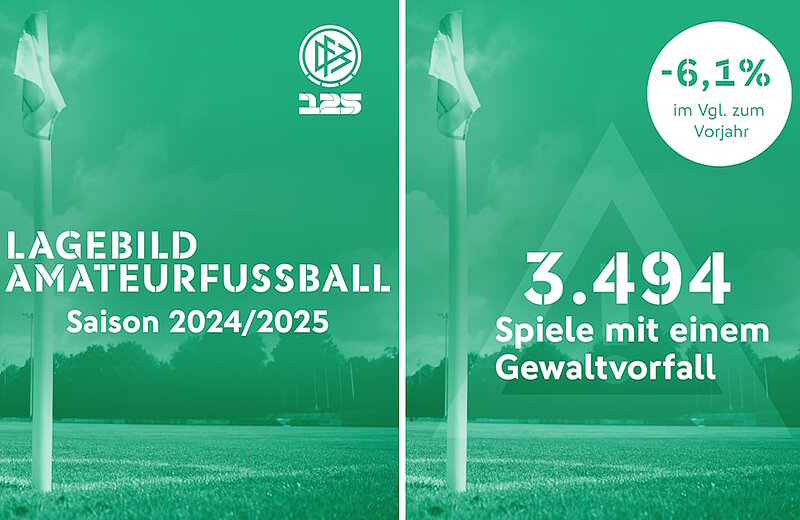 Der Deutsche Fußball-Bund (DFB) vermeldet im zweiten Jahr in Folge einen Rückgang an Gewalt- und Diskriminierungsvorfällen auf den Sportplätzen in Deutschland. In der Saison 2024/2025 wurden 829 gewalt- oder diskriminierungsbedingte Spielabbrüche im organisierten Spielbetrieb registriert. Das sind neun Prozent weniger als im Vorjahr und bedeutet den niedrigsten Stand seit Ende der Corona-Pandemie vor vier Jahren. Bezogen auf die Gesamtzahl von rund 1,286 Millionen Partien mit abgeschlossenen Spielbericht waren 0,06 Prozent der Spiele von einem Abbruch betroffen.