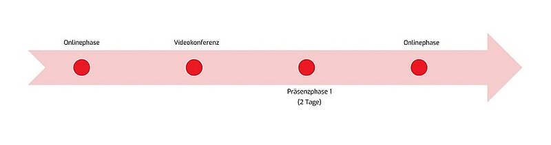 In den Onlinephasen bearbeitest Du verschiedene Aufgaben vor, zwischen und nach den Präsenzphasen. Diese sind jeweils mit Abgabefristen versehen, können aber innerhalb dieses Zeitraums flexibel erledigt werden. Feste Online-Termine mit Anwesenheitspflicht gibt es in der Regel nicht.